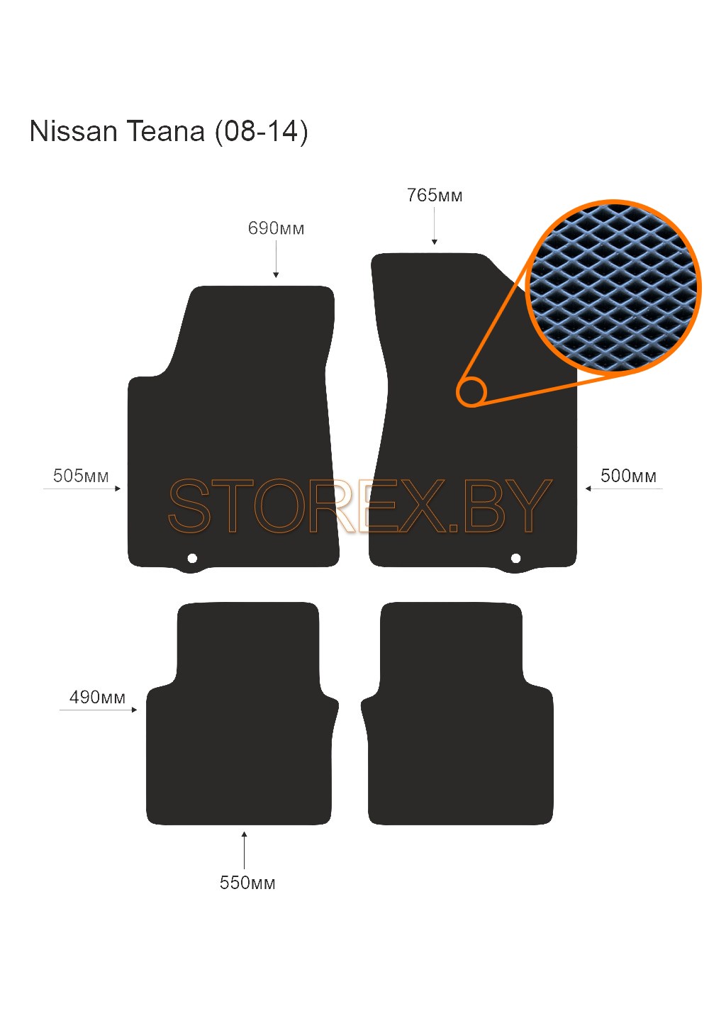 Цена указана за базовый комплект из 4-х ковриков в салон без подпятника и лейбла. Можно приобрести любой коврик отдельно (водительский или пассажирские), а также в багажник. Модельные коврики изготовлены по лекалам вашего автомобиля, плотно ложатся в салон или багажник. Основные преимущества ЭВА-полимера: Эластичность и деформационная стойкость.Широкий рабочий температурный диапазон от -70 до +80 градусов по Цельсию. Высокая устойчивость к механическому воздействию и агрессивным средам. Химическая инертность и нетаксичность, отсутствие запаха. Дополнительна возможна установка: подпятника из металла (уплотнение на водительском коврике размером 20*30 см); люверса и липучки для надежной фиксации; металлической лейблы с логотипом любой марки автомобиля. Возможные цвета: черный; серый; бежевый; коричневый. Два вида соты, ромб и шестиугольник.