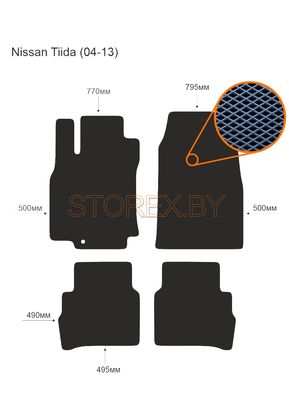 Цена указана за базовый комплект из 4-х ковриков в салон без подпятника и лейбла. Можно приобрести любой коврик отдельно (водительский или пассажирские), а также в багажник. Модельные коврики изготовлены по лекалам вашего автомобиля, плотно ложатся в салон или багажник. Основные преимущества ЭВА-полимера: Эластичность и деформационная стойкость.Широкий рабочий температурный диапазон от -70 до +80 градусов по Цельсию. Высокая устойчивость к механическому воздействию и агрессивным средам. Химическая инертность и нетаксичность, отсутствие запаха. Дополнительна возможна установка: подпятника из металла (уплотнение на водительском коврике размером 20*30 см); люверса и липучки для надежной фиксации; металлической лейблы с логотипом любой марки автомобиля. Возможные цвета: черный; серый; бежевый; коричневый. Два вида соты, ромб и шестиугольник.