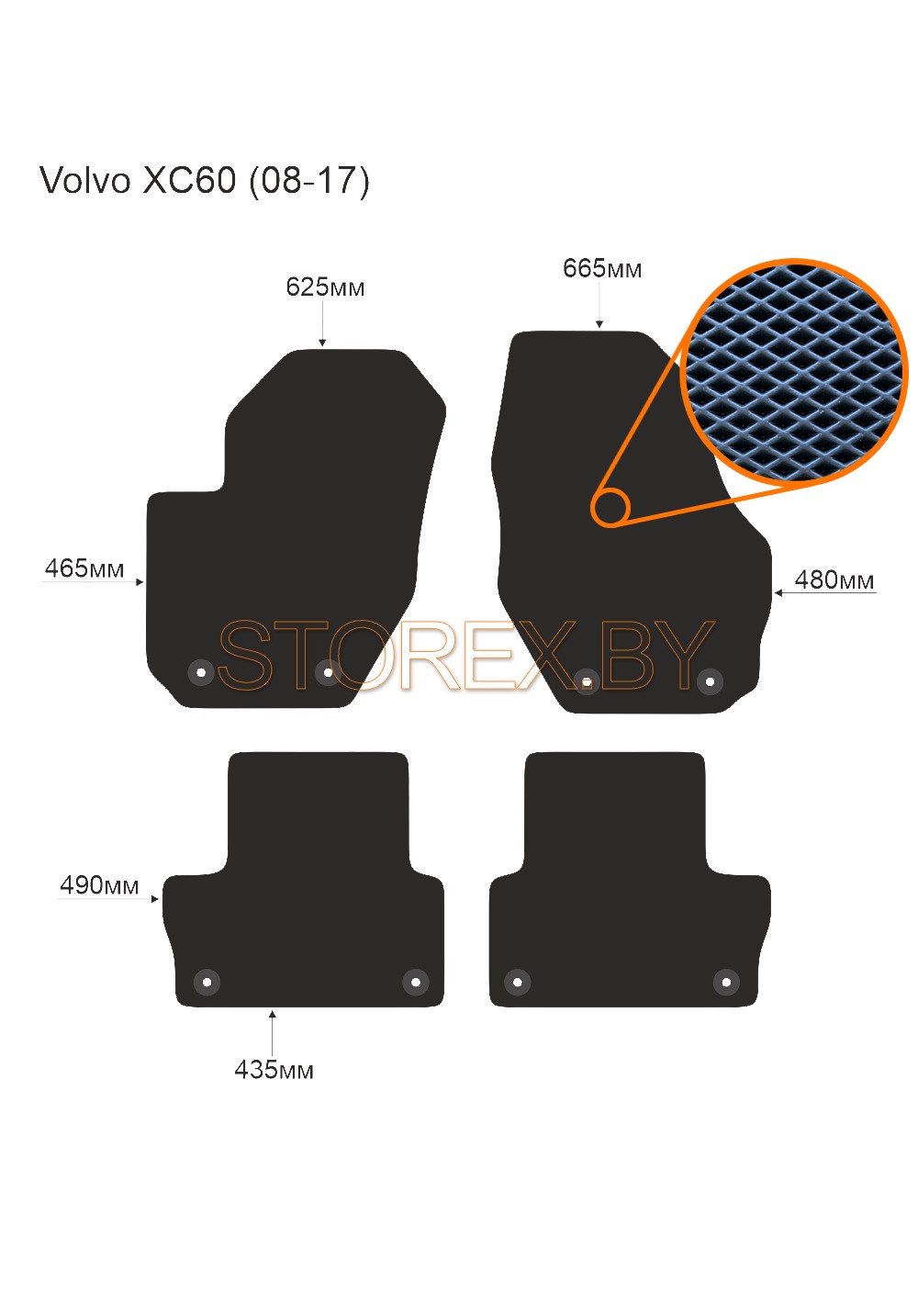 Цена указана за базовый комплект из 4-х ковриков в салон без подпятника и лейбла. Можно приобрести любой коврик отдельно (водительский или пассажирские), а также в багажник. Модельные коврики изготовлены по лекалам вашего автомобиля, плотно ложатся в салон или багажник. Основные преимущества ЭВА-полимера: Эластичность и деформационная стойкость.Широкий рабочий температурный диапазон от -70 до +80 градусов по Цельсию. Высокая устойчивость к механическому воздействию и агрессивным средам. Химическая инертность и нетаксичность, отсутствие запаха. Дополнительна возможна установка: подпятника из металла (уплотнение на водительском коврике размером 20*30 см); люверса и липучки для надежной фиксации; металлической лейблы с логотипом любой марки автомобиля. Возможные цвета: черный; серый; бежевый; коричневый. Два вида соты, ромб и шестиугольник.