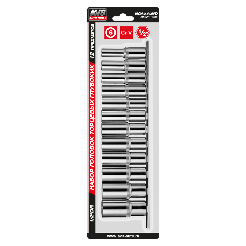 Головка торцевая 6-гранная глубокая 1/2"DR: 10 мм, 12мм, 13 мм, 14 мм, 15 мм, 16 мм, 17 мм, 18 мм, 19 мм, 21 мм, 22 мм, 24 мм