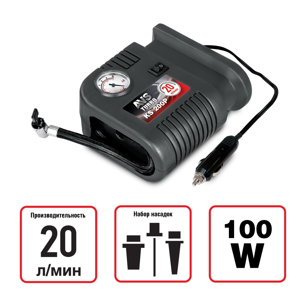 Компрессор KS200P - поршневой, создающий давление за счёт движения поршня. Из этого следует большая мощность, скорость накачки и всепогодность.