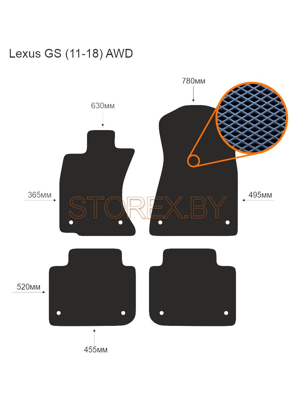 Цена указана за базовый комплект из 4-х ковриков в салон без подпятника и лейбла. Можно приобрести любой коврик отдельно (водительский или пассажирские), а также в багажник. Модельные коврики изготовлены по лекалам вашего автомобиля, плотно ложатся в салон или багажник. Основные преимущества ЭВА-полимера: Эластичность и деформационная стойкость.Широкий рабочий температурный диапазон от -70 до +80 градусов по Цельсию. Высокая устойчивость к механическому воздействию и агрессивным средам. Химическая инертность и нетаксичность, отсутствие запаха. Дополнительна возможна установка: подпятника из металла (уплотнение на водительском коврике размером 20*30 см); люверса и липучки для надежной фиксации; металлической лейблы с логотипом любой марки автомобиля. Возможные цвета: черный; серый; бежевый; коричневый. Два вида соты, ромб и шестиугольник.