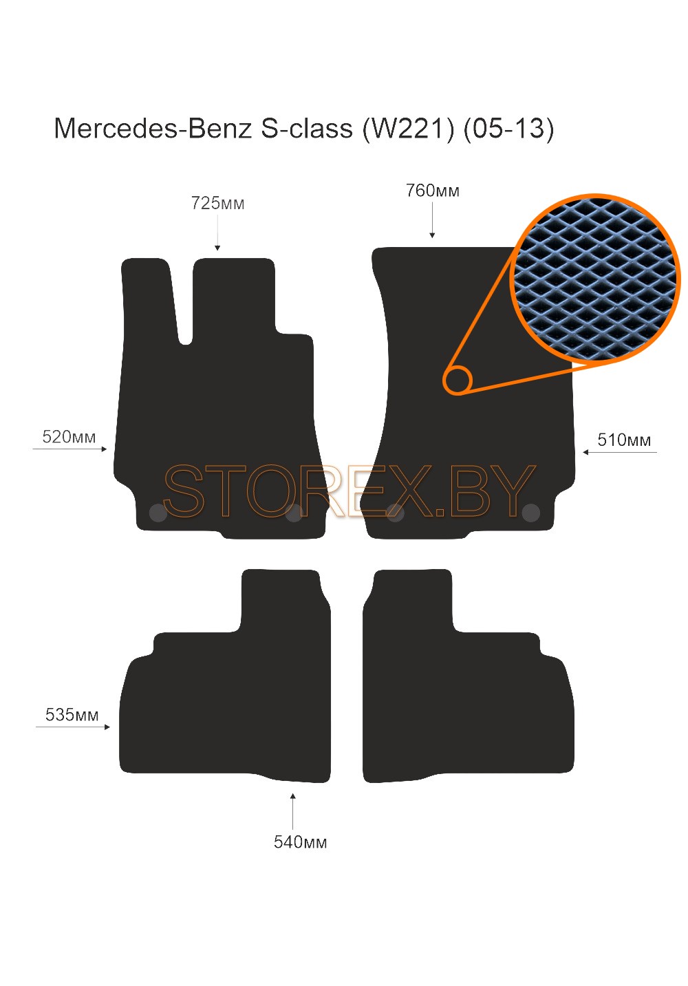 Цена указана за базовый комплект из 4-х ковриков в салон без подпятника и лейбла. Можно приобрести любой коврик отдельно (водительский или пассажирские), а также в багажник. Модельные коврики изготовлены по лекалам вашего автомобиля, плотно ложатся в салон или багажник. Основные преимущества ЭВА-полимера: Эластичность и деформационная стойкость.Широкий рабочий температурный диапазон от -70 до +80 градусов по Цельсию. Высокая устойчивость к механическому воздействию и агрессивным средам. Химическая инертность и нетаксичность, отсутствие запаха. Дополнительна возможна установка: подпятника из металла (уплотнение на водительском коврике размером 20*30 см); люверса и липучки для надежной фиксации; металлической лейблы с логотипом любой марки автомобиля. Возможные цвета: черный; серый; бежевый; коричневый. Два вида соты, ромб и шестиугольник.