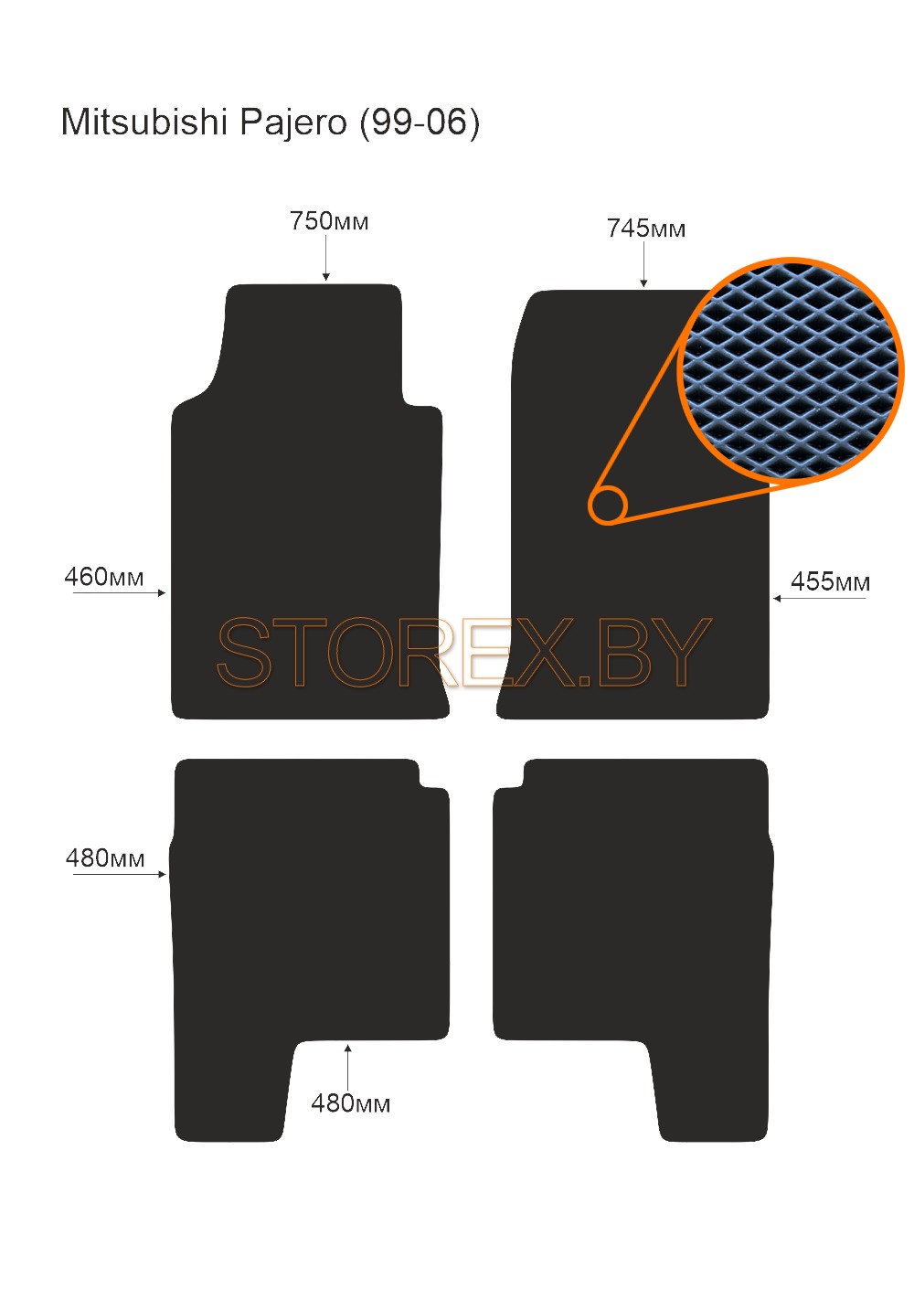Цена указана за базовый комплект из 4-х ковриков в салон без подпятника и лейбла. Можно приобрести любой коврик отдельно (водительский или пассажирские), а также в багажник. Модельные коврики изготовлены по лекалам вашего автомобиля, плотно ложатся в салон или багажник. Основные преимущества ЭВА-полимера: Эластичность и деформационная стойкость.Широкий рабочий температурный диапазон от -70 до +80 градусов по Цельсию. Высокая устойчивость к механическому воздействию и агрессивным средам. Химическая инертность и нетаксичность, отсутствие запаха. Дополнительна возможна установка: подпятника из металла (уплотнение на водительском коврике размером 20*30 см); люверса и липучки для надежной фиксации; металлической лейблы с логотипом любой марки автомобиля. Возможные цвета: черный; серый; бежевый; коричневый. Два вида соты, ромб и шестиугольник.