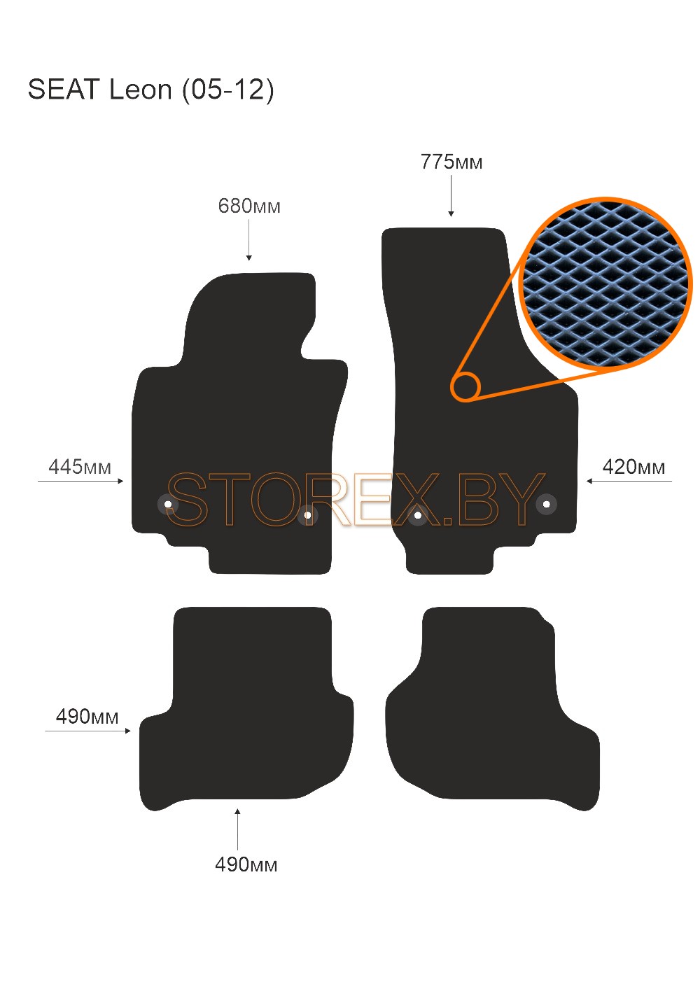 Цена указана за базовый комплект из 4-х ковриков в салон без подпятника и лейбла. Можно приобрести любой коврик отдельно (водительский или пассажирские), а также в багажник. Модельные коврики изготовлены по лекалам вашего автомобиля, плотно ложатся в салон или багажник. Основные преимущества ЭВА-полимера: Эластичность и деформационная стойкость.Широкий рабочий температурный диапазон от -70 до +80 градусов по Цельсию. Высокая устойчивость к механическому воздействию и агрессивным средам. Химическая инертность и нетаксичность, отсутствие запаха. Дополнительна возможна установка: подпятника из металла (уплотнение на водительском коврике размером 20*30 см); люверса и липучки для надежной фиксации; металлической лейблы с логотипом любой марки автомобиля. Возможные цвета: черный; серый; бежевый; коричневый. Два вида соты, ромб и шестиугольник.
