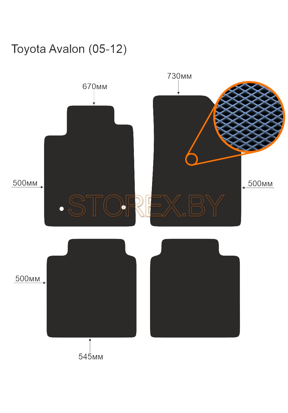 Цена указана за базовый комплект из 4-х ковриков в салон без подпятника и лейбла. Можно приобрести любой коврик отдельно (водительский или пассажирские), а также в багажник. Модельные коврики изготовлены по лекалам вашего автомобиля, плотно ложатся в салон или багажник. Основные преимущества ЭВА-полимера: Эластичность и деформационная стойкость.Широкий рабочий температурный диапазон от -70 до +80 градусов по Цельсию. Высокая устойчивость к механическому воздействию и агрессивным средам. Химическая инертность и нетаксичность, отсутствие запаха. Дополнительна возможна установка: подпятника из металла (уплотнение на водительском коврике размером 20*30 см); люверса и липучки для надежной фиксации; металлической лейблы с логотипом любой марки автомобиля. Возможные цвета: черный; серый; бежевый; коричневый. Два вида соты, ромб и шестиугольник.