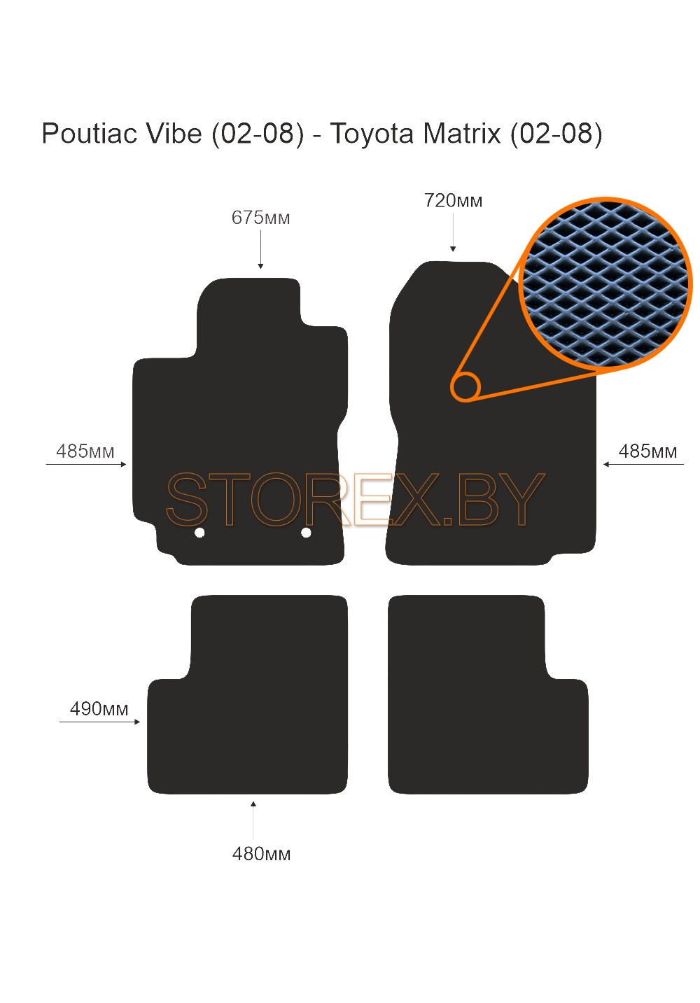 Цена указана за базовый комплект из 4-х ковриков в салон без подпятника и лейбла. Можно приобрести любой коврик отдельно (водительский или пассажирские), а также в багажник. Модельные коврики изготовлены по лекалам вашего автомобиля, плотно ложатся в салон или багажник. Основные преимущества ЭВА-полимера: Эластичность и деформационная стойкость.Широкий рабочий температурный диапазон от -70 до +80 градусов по Цельсию. Высокая устойчивость к механическому воздействию и агрессивным средам. Химическая инертность и нетаксичность, отсутствие запаха. Дополнительна возможна установка: подпятника из металла (уплотнение на водительском коврике размером 20*30 см); люверса и липучки для надежной фиксации; металлической лейблы с логотипом любой марки автомобиля. Возможные цвета: черный; серый; бежевый; коричневый. Два вида соты, ромб и шестиугольник.