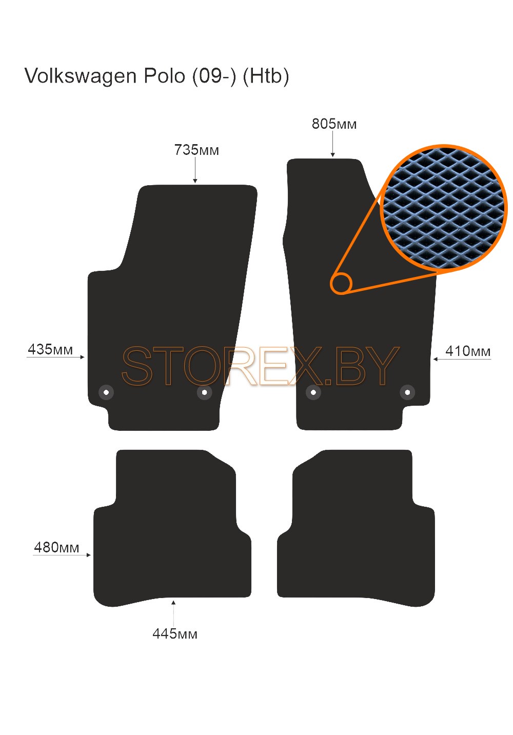 Цена указана за базовый комплект из 4-х ковриков в салон без подпятника и лейбла. Можно приобрести любой коврик отдельно (водительский или пассажирские), а также в багажник. Модельные коврики изготовлены по лекалам вашего автомобиля, плотно ложатся в салон или багажник. Основные преимущества ЭВА-полимера: Эластичность и деформационная стойкость.Широкий рабочий температурный диапазон от -70 до +80 градусов по Цельсию. Высокая устойчивость к механическому воздействию и агрессивным средам. Химическая инертность и нетаксичность, отсутствие запаха. Дополнительна возможна установка: подпятника из металла (уплотнение на водительском коврике размером 20*30 см); люверса и липучки для надежной фиксации; металлической лейблы с логотипом любой марки автомобиля. Возможные цвета: черный; серый; бежевый; коричневый. Два вида соты, ромб и шестиугольник.
