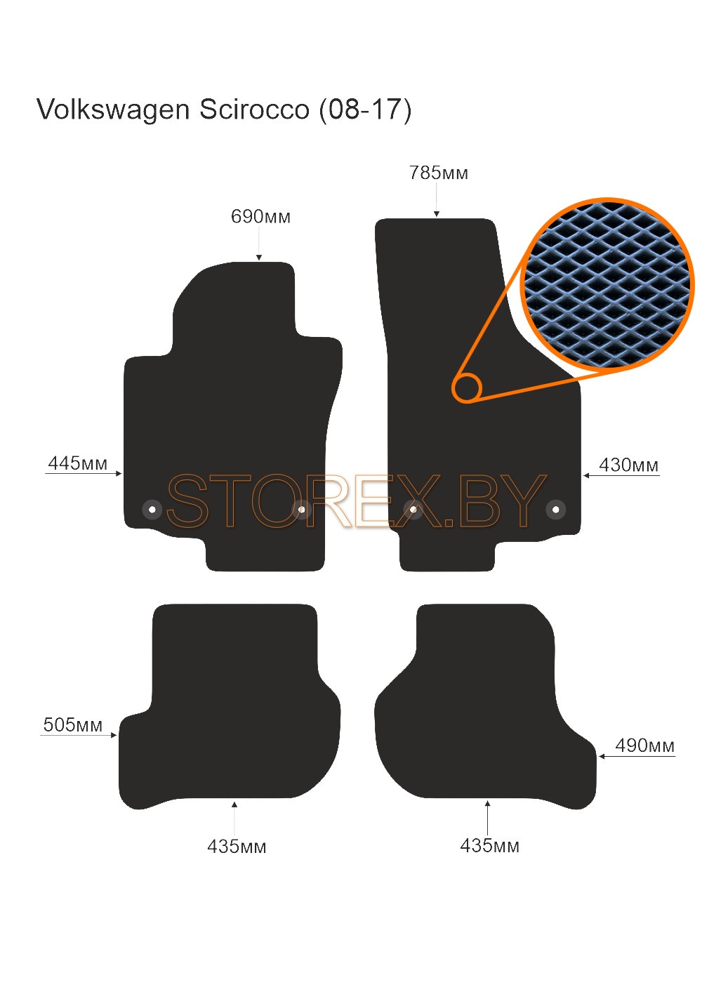 Цена указана за базовый комплект из 4-х ковриков в салон без подпятника и лейбла. Можно приобрести любой коврик отдельно (водительский или пассажирские), а также в багажник. Модельные коврики изготовлены по лекалам вашего автомобиля, плотно ложатся в салон или багажник. Основные преимущества ЭВА-полимера: Эластичность и деформационная стойкость.Широкий рабочий температурный диапазон от -70 до +80 градусов по Цельсию. Высокая устойчивость к механическому воздействию и агрессивным средам. Химическая инертность и нетаксичность, отсутствие запаха. Дополнительна возможна установка: подпятника из металла (уплотнение на водительском коврике размером 20*30 см); люверса и липучки для надежной фиксации; металлической лейблы с логотипом любой марки автомобиля. Возможные цвета: черный; серый; бежевый; коричневый. Два вида соты, ромб и шестиугольник.