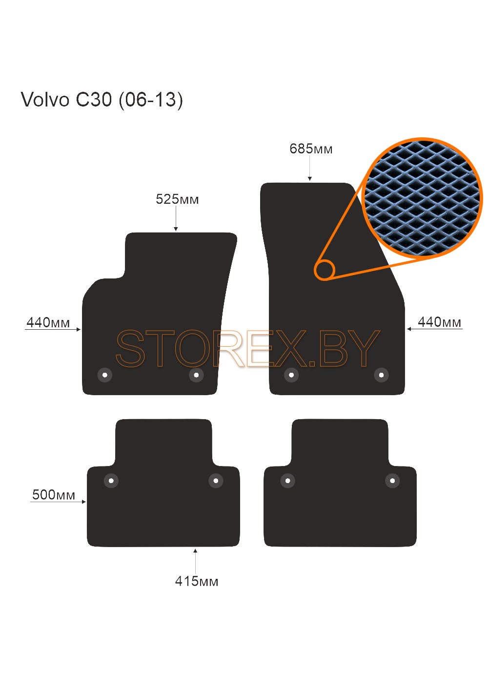 Цена указана за базовый комплект из 4-х ковриков в салон без подпятника и лейбла. Можно приобрести любой коврик отдельно (водительский или пассажирские), а также в багажник. Модельные коврики изготовлены по лекалам вашего автомобиля, плотно ложатся в салон или багажник. Основные преимущества ЭВА-полимера: Эластичность и деформационная стойкость.Широкий рабочий температурный диапазон от -70 до +80 градусов по Цельсию. Высокая устойчивость к механическому воздействию и агрессивным средам. Химическая инертность и нетаксичность, отсутствие запаха. Дополнительна возможна установка: подпятника из металла (уплотнение на водительском коврике размером 20*30 см); люверса и липучки для надежной фиксации; металлической лейблы с логотипом любой марки автомобиля. Возможные цвета: черный; серый; бежевый; коричневый. Два вида соты, ромб и шестиугольник.