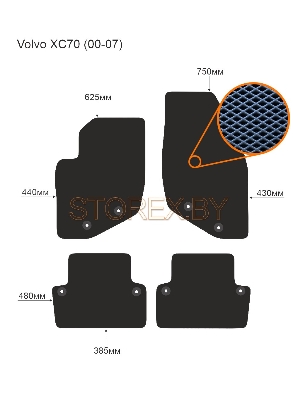 Цена указана за базовый комплект из 4-х ковриков в салон без подпятника и лейбла. Можно приобрести любой коврик отдельно (водительский или пассажирские), а также в багажник. Модельные коврики изготовлены по лекалам вашего автомобиля, плотно ложатся в салон или багажник. Основные преимущества ЭВА-полимера: Эластичность и деформационная стойкость.Широкий рабочий температурный диапазон от -70 до +80 градусов по Цельсию. Высокая устойчивость к механическому воздействию и агрессивным средам. Химическая инертность и нетаксичность, отсутствие запаха. Дополнительна возможна установка: подпятника из металла (уплотнение на водительском коврике размером 20*30 см); люверса и липучки для надежной фиксации; металлической лейблы с логотипом любой марки автомобиля. Возможные цвета: черный; серый; бежевый; коричневый. Два вида соты, ромб и шестиугольник.