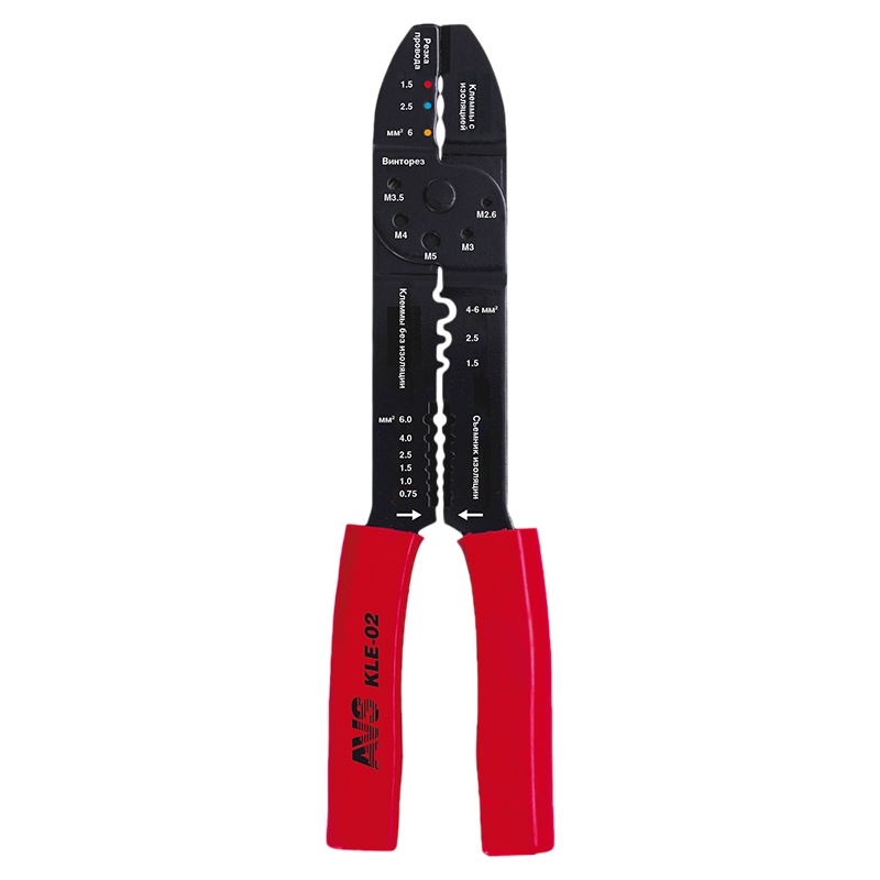 Предназначены для снятия изоляции с проводов и кабелей сечением 0,75–6,0 мм² и обжима изолированных и неизолированных клемм сечением 0,5–6,0 мм², а также обжима автомобильных клемм сечением 7,0 - 8,0 мм². Снабжены кусачками и резаком для винтов М2,6-М5.