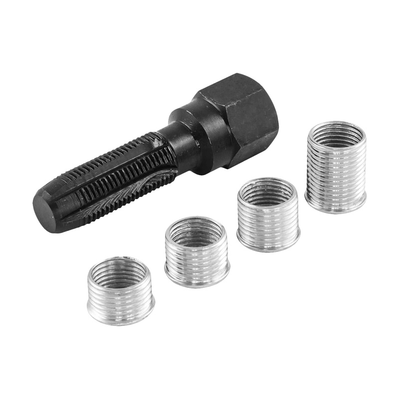 В состав набора входит метчик М14х1,25 мм и 4 резьбовые футорки длиной 9.5, 11.0, 12.7, 20.0 мм.