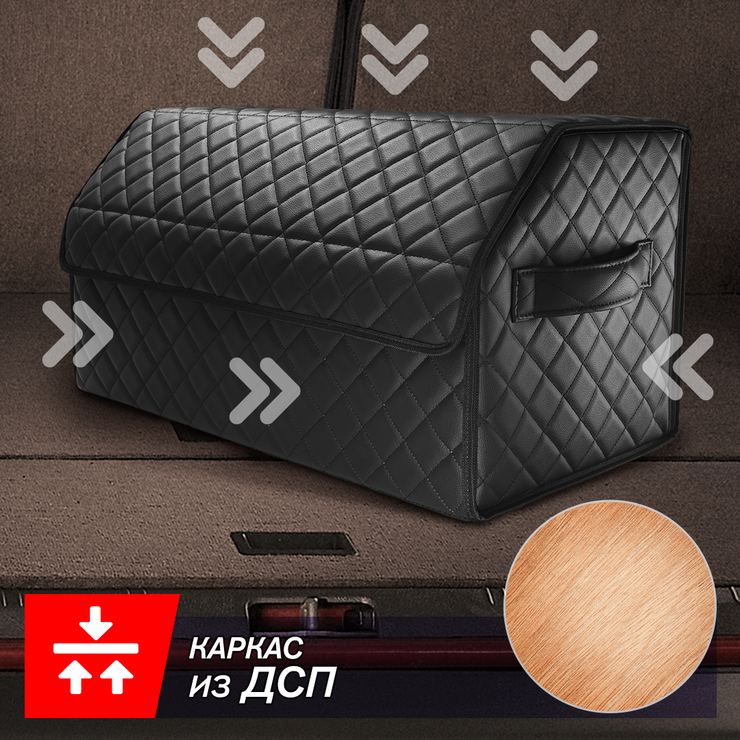 Автокейс в машину спасет ваш багажник от бесконечного беспорядка! Автомобильный универсальный органайзер для хранения всех необходимых аксессуаров и быстро находить их. Кофр изготовлен из износостойкой автомобильной экокожи. Крышка надежно фиксируется магнитной лентой. Имеет прочный корпус из ДВП. На дно нашита антискользящая лента для предотвращения перемещения кейса при поворотах и торможении. На боковых стенках расположены ручки из экокожи для удобного перемещения. Внутренняя отделка изготовлена из водонепроницаемой ткани, даже если внутри прольется масло, оно не испачкает багажник. Автокейс имеет разборную конструкцию для удобного и компактного складского хранения, ведь в разобранном виде автокейс в высоту всего несколько сантиметров.