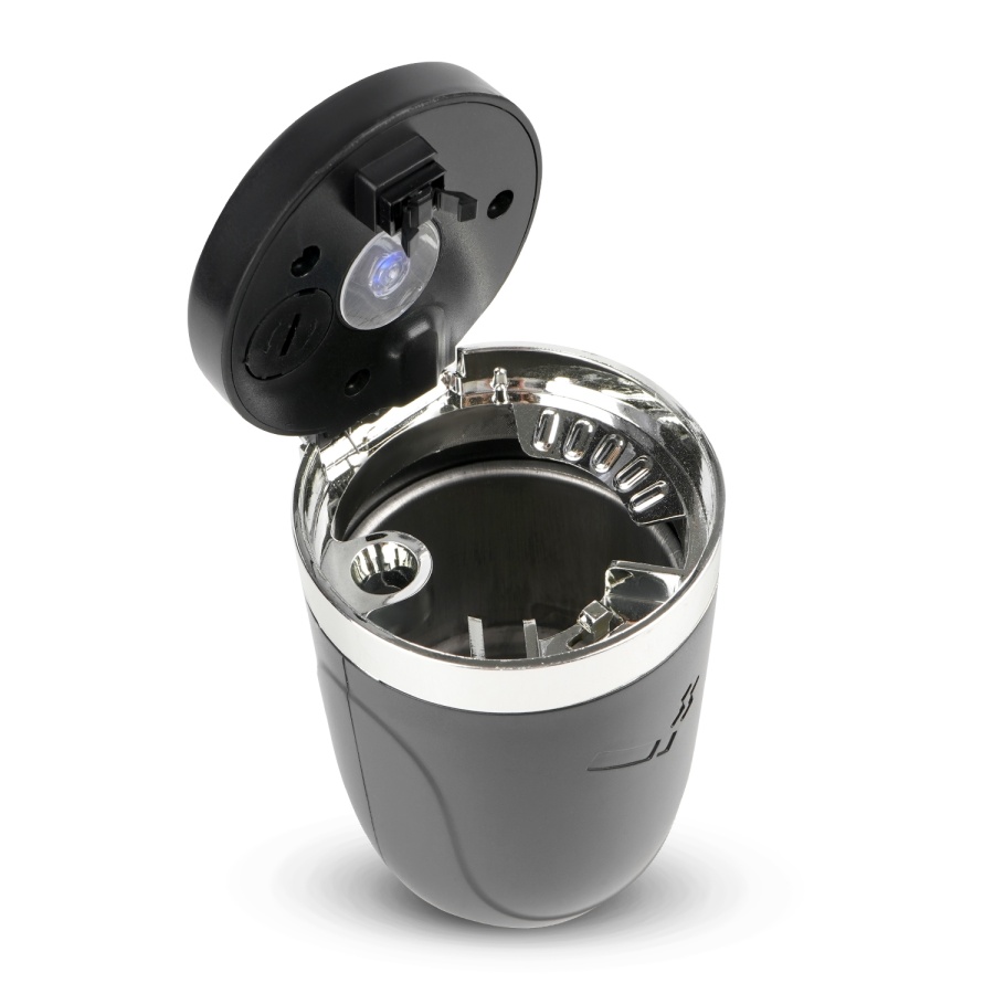 Пепельница является универсальной и устанавливается в автомобильный подстаканник или держатель банки на консоли. Имеет специальную крышку с функцией “Защита от запаха”, при закрытии крышки, запах остается внутри и не выходит наружу.