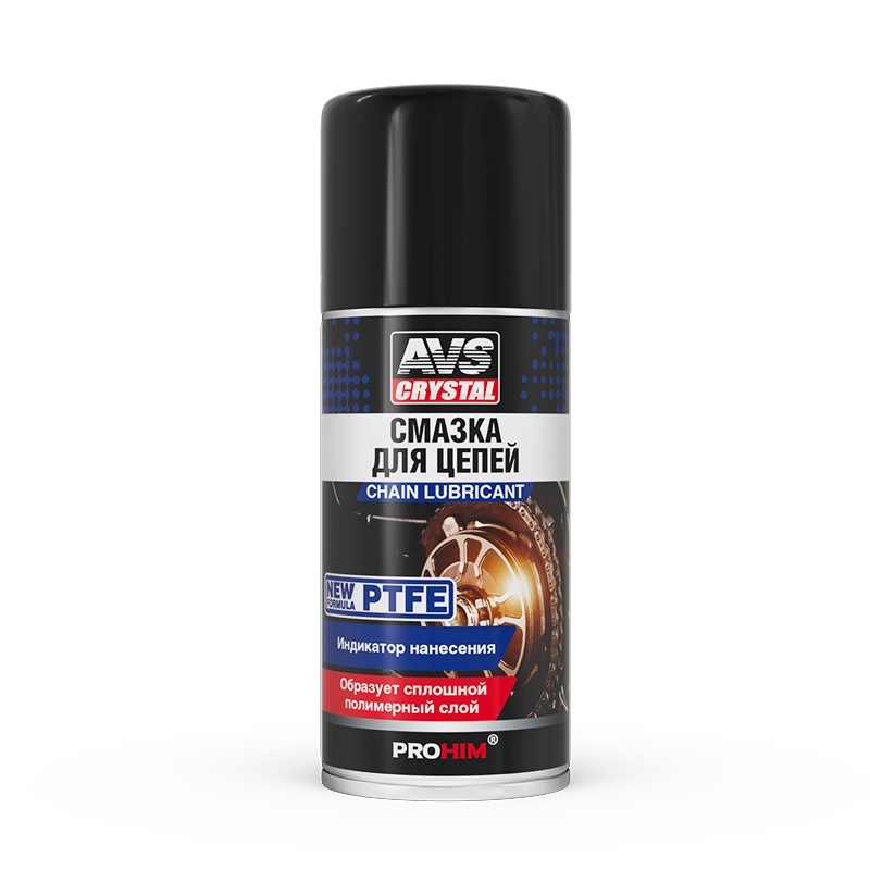Способ применения: Очистить цепь с помощью «Очиститель цепей AVS Crystal» и высушить. Хорошо встряхнуть аэрозоль и, прокручивая привод, нанести смазку тонким слоем сверху на нижнюю ветвь цепи по всей её длине. Удалить излишки смазки безворсовой салфеткой.